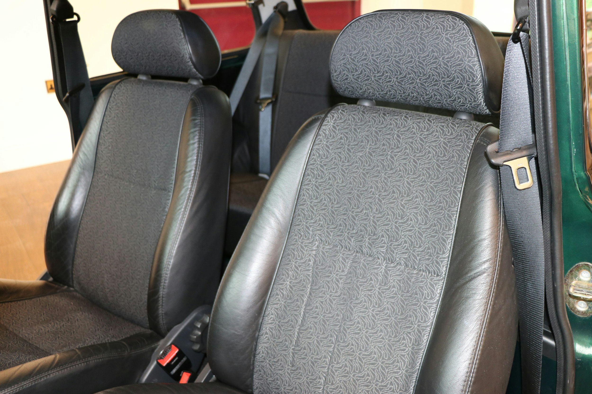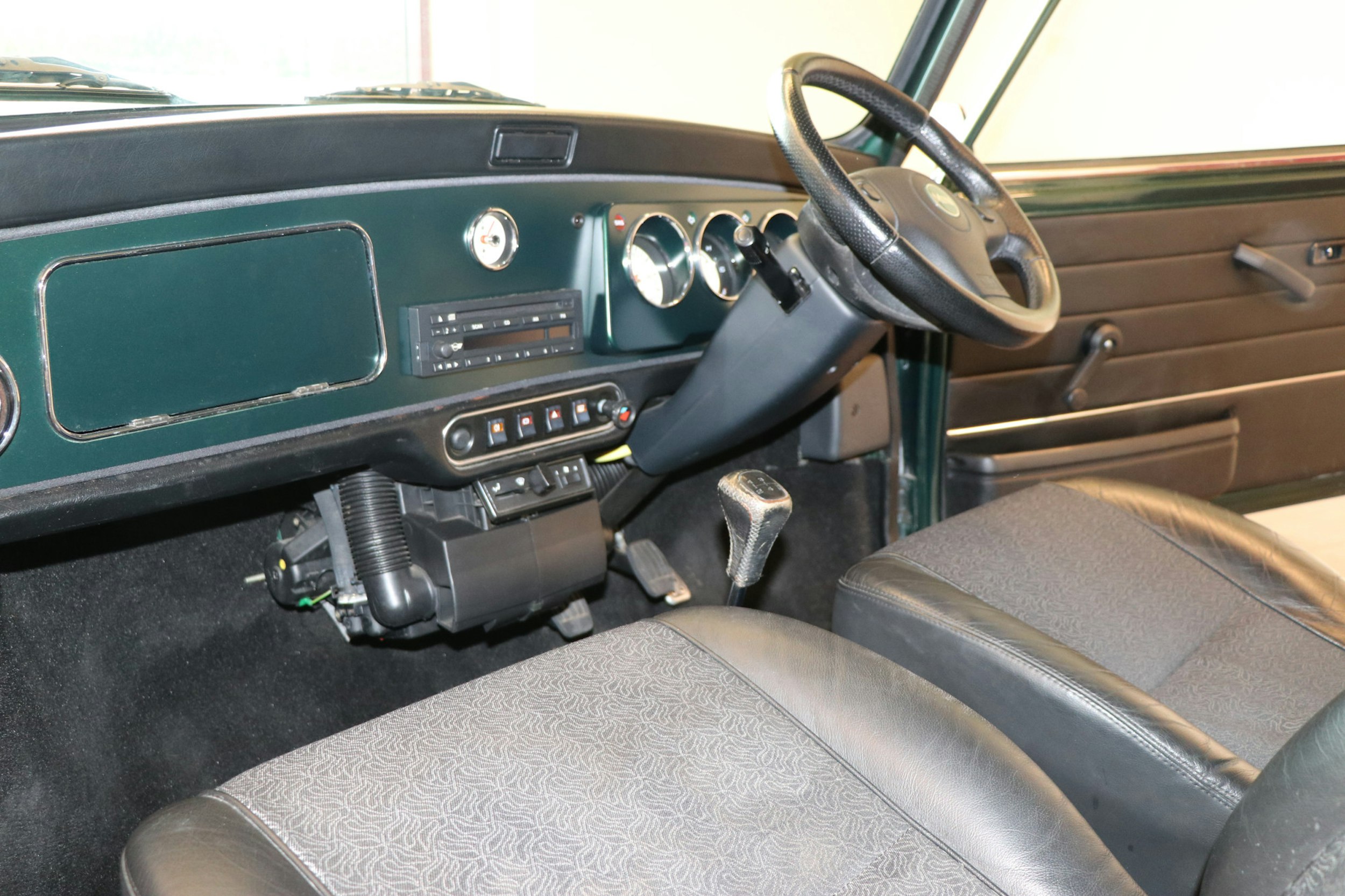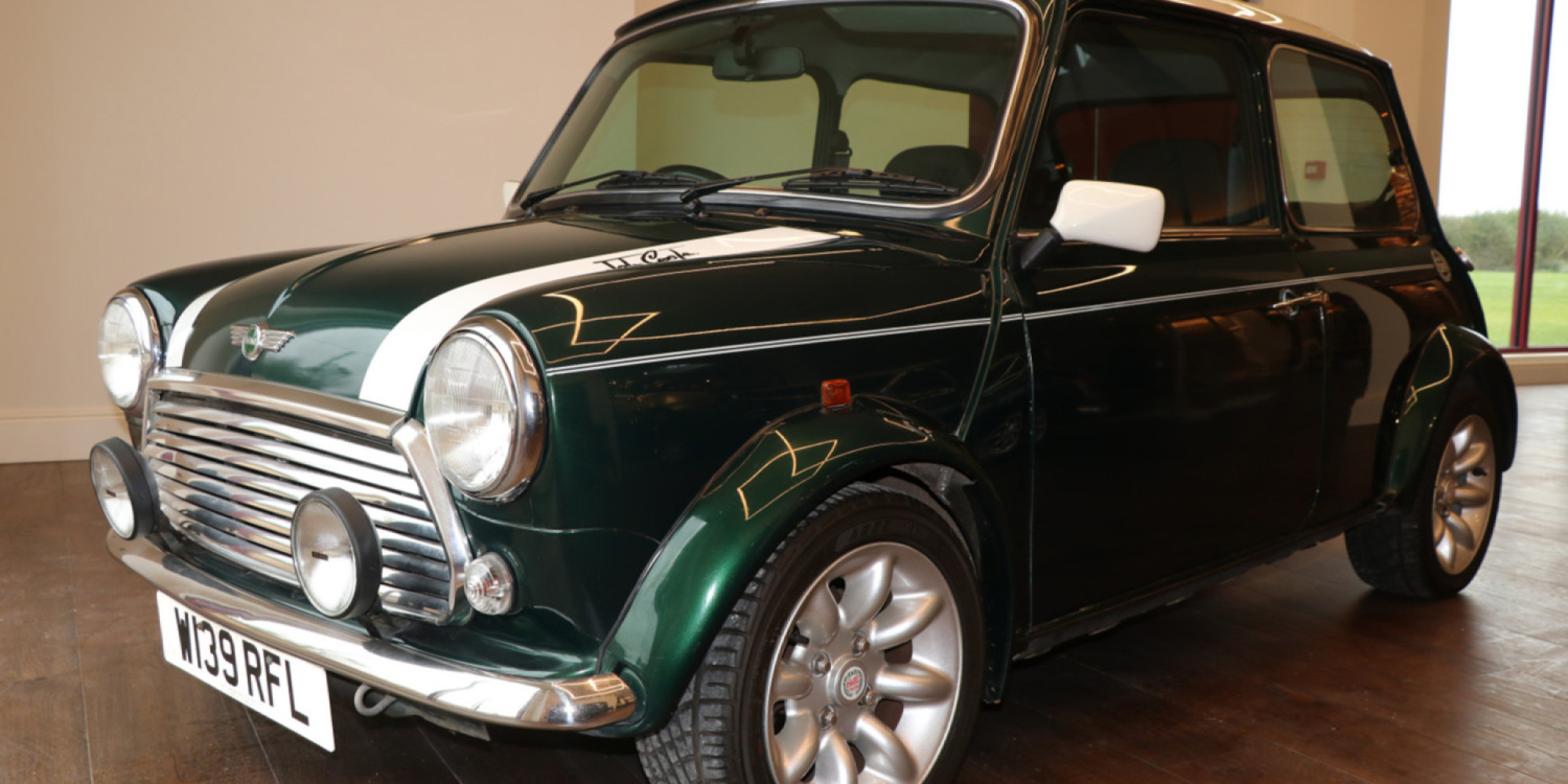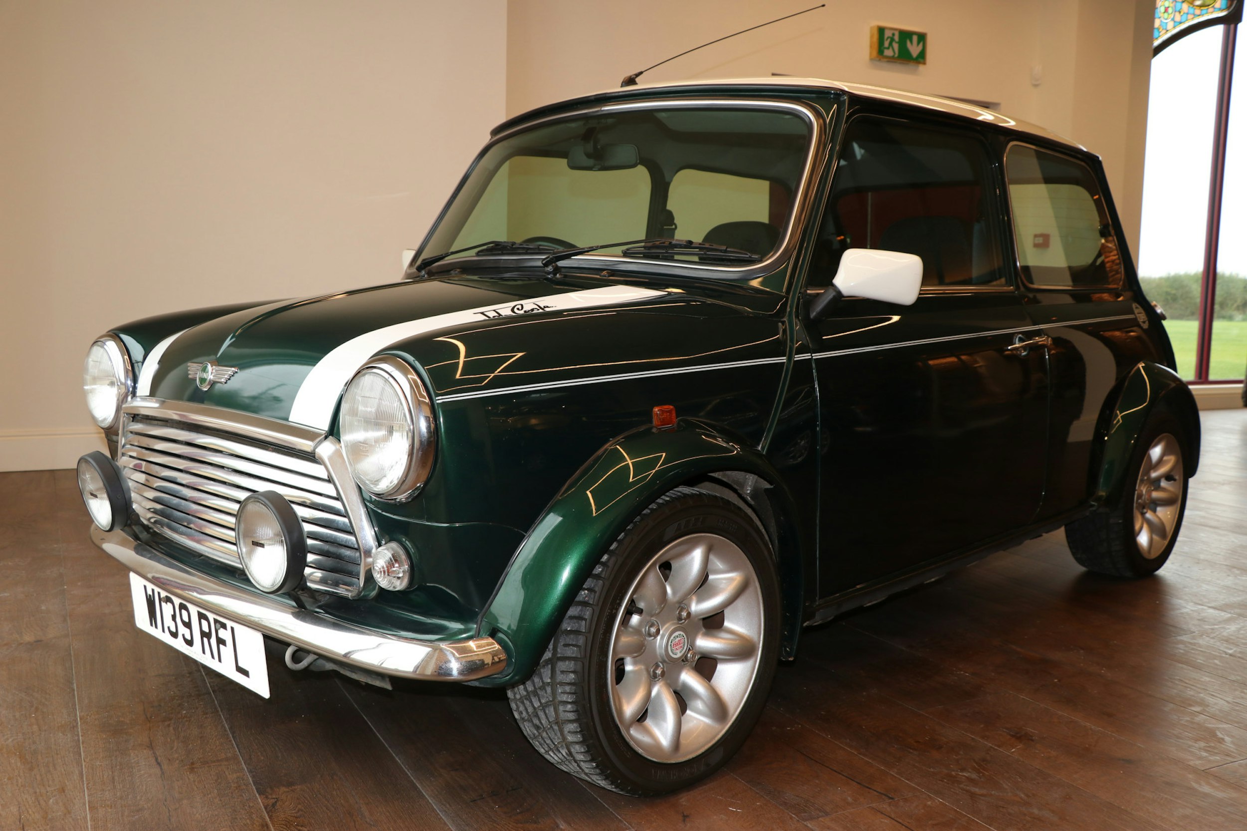 It's in lovely condition finished in deep metallic green with white roof and stripes. The interior is finished in black half leather and is also in great condition.